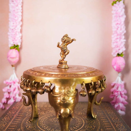 Vallabhav Ganesh Brass Idol – Seated Ganesha With Consorts Riddhi & Siddhi
