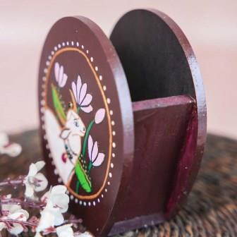 Sold outRound Kolam Manai Maroon 4" Set Of 2