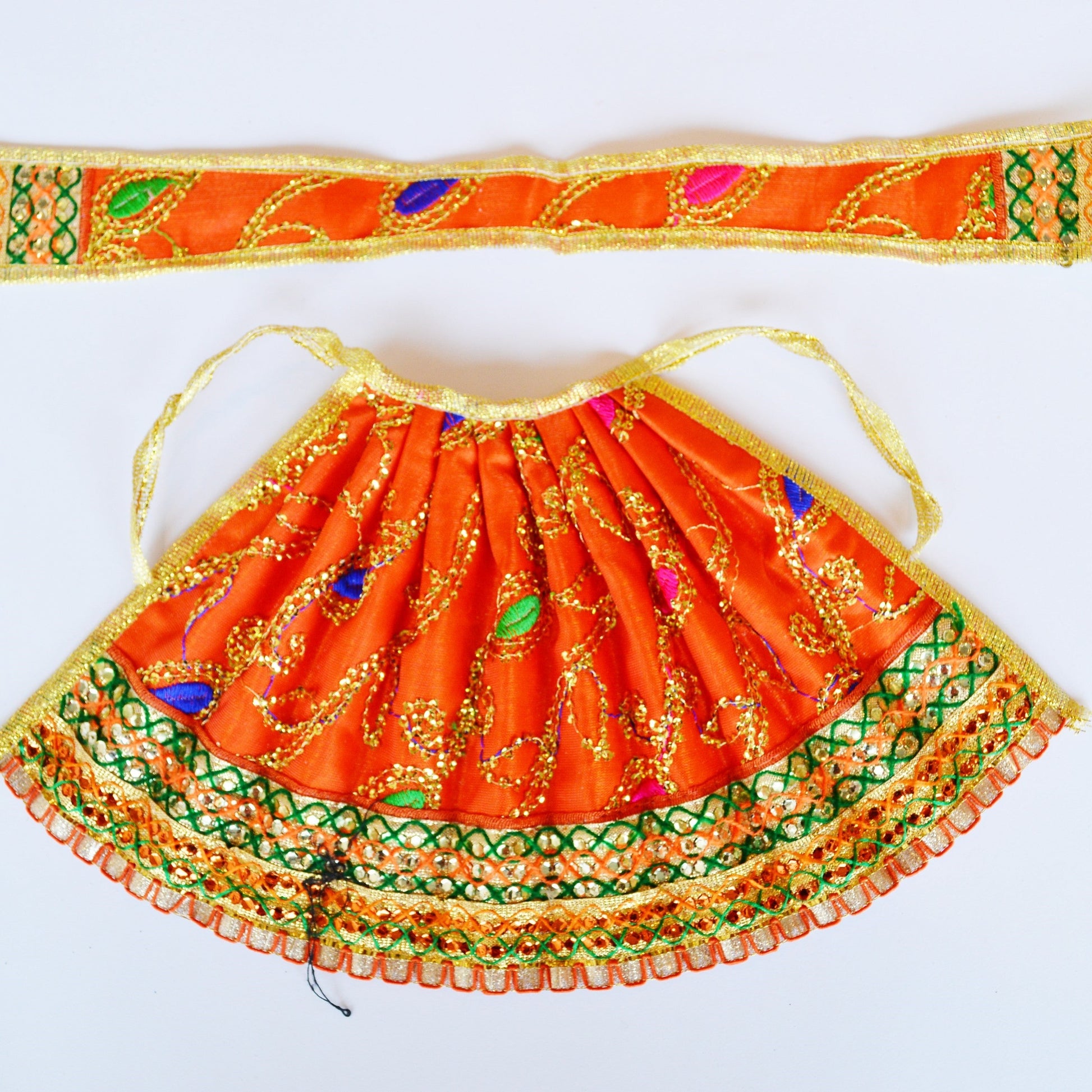 Deity Ambal Pavadai Set - Orange With Gold And Green Embellishments