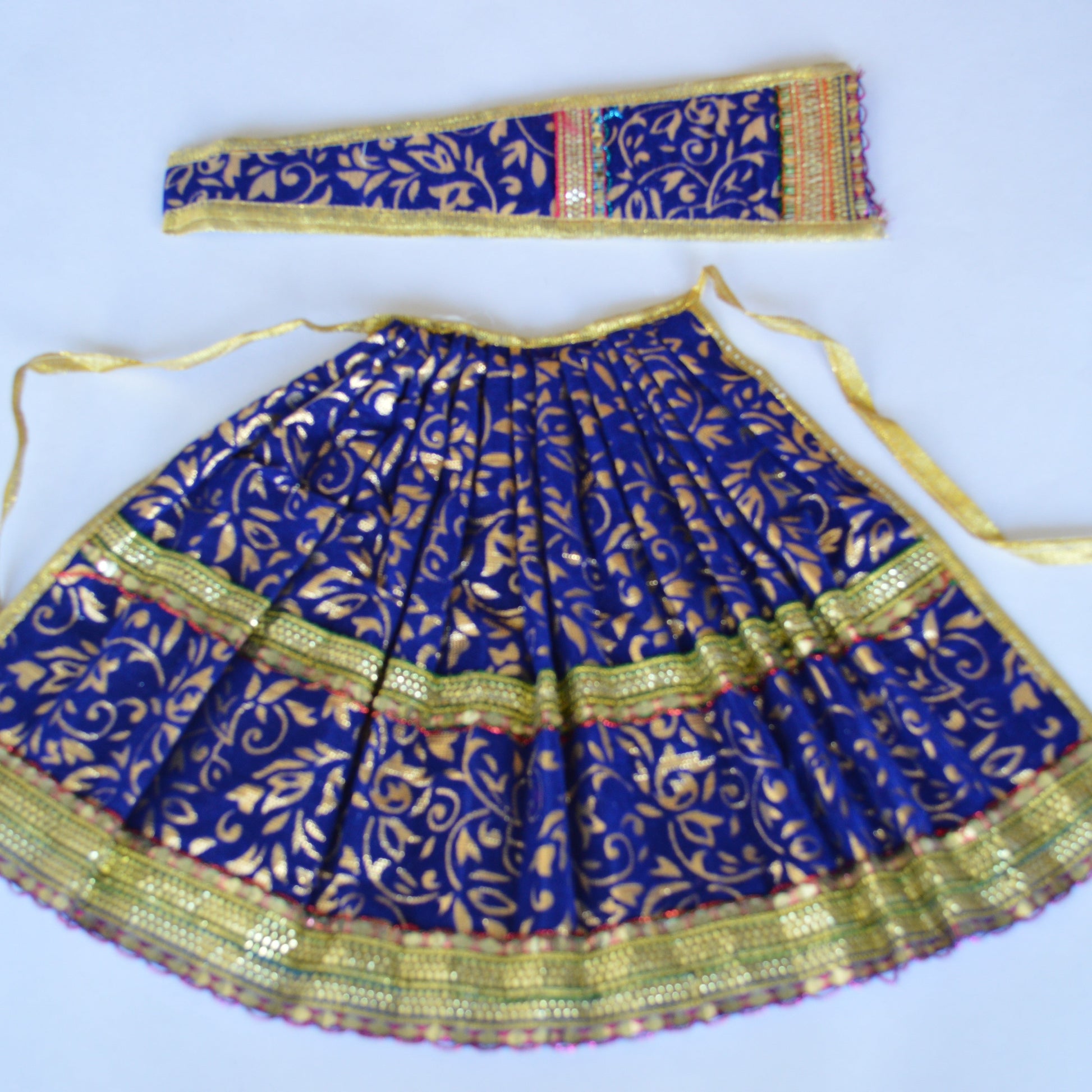 Deity Amman Pavadai Set - Royal Blue With Gold Embellishments (11 Inches)