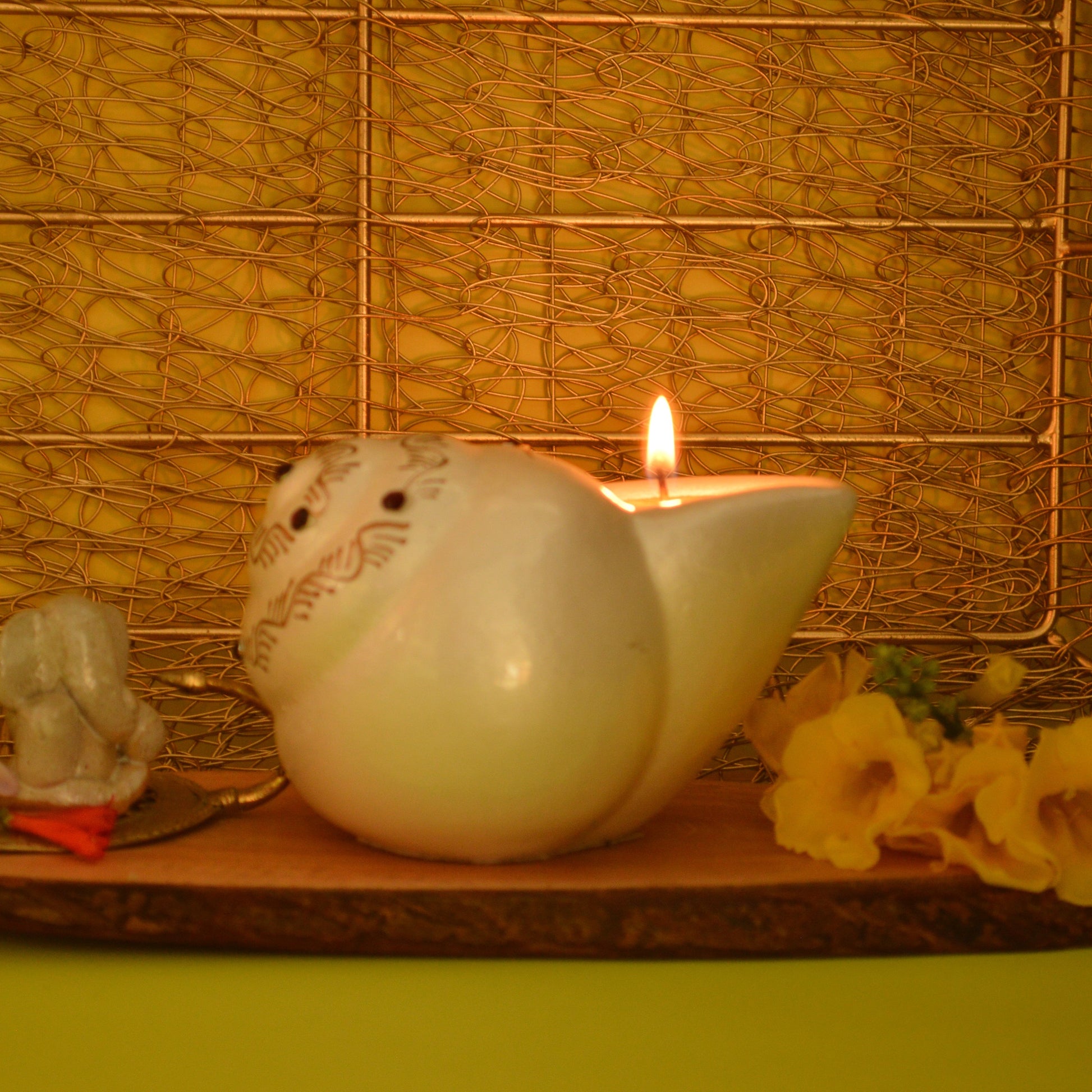Earthen Shankh (Sangu) Tealight Holder – Sacred Shell-Inspired Lamp