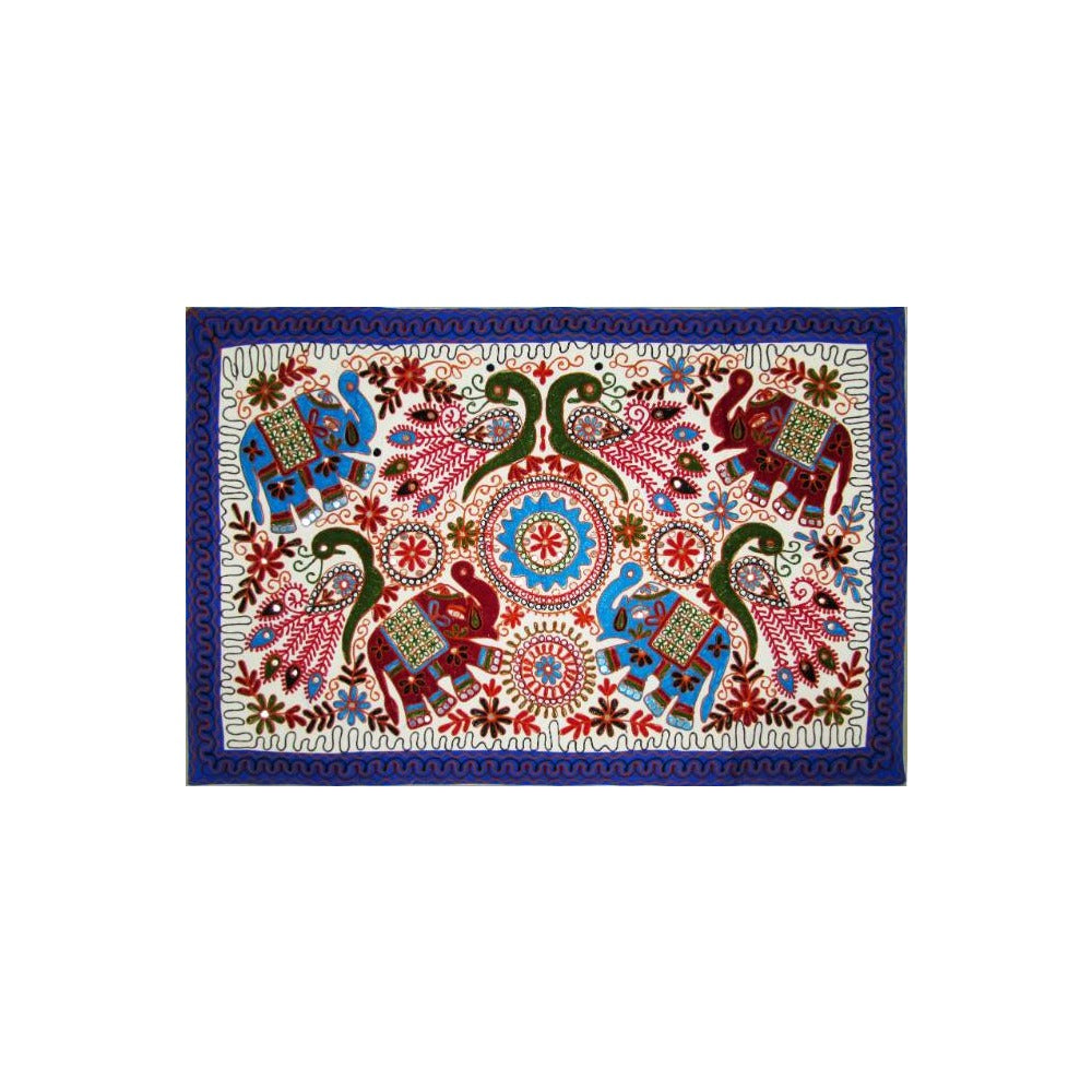 Gujarati Embroidered Wall Hanging – Peacock & Elephant Motif Tapestry