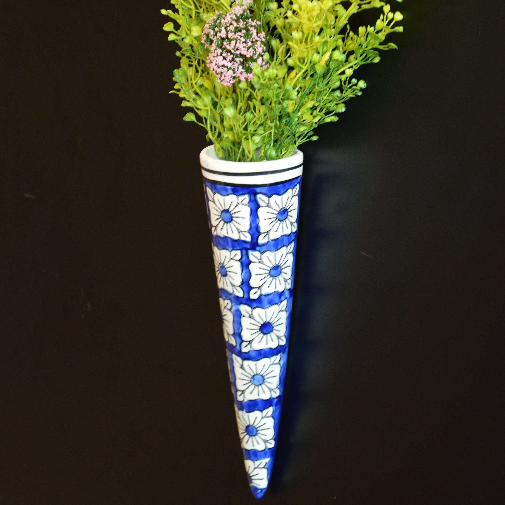Hand-Painted Blue Cone Hanging Planter – Small