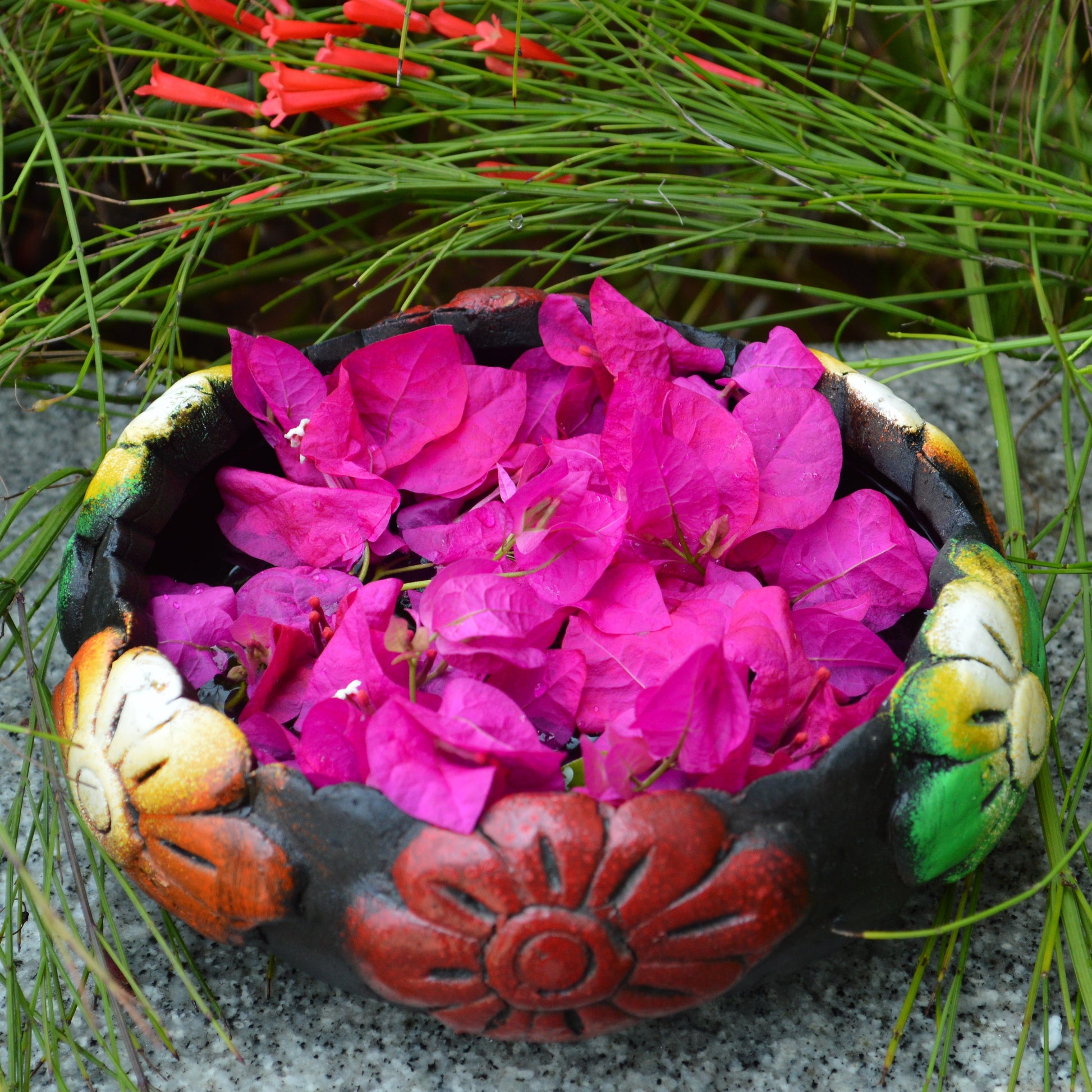 Handcrafted Earthen Urli With Floral Embossing