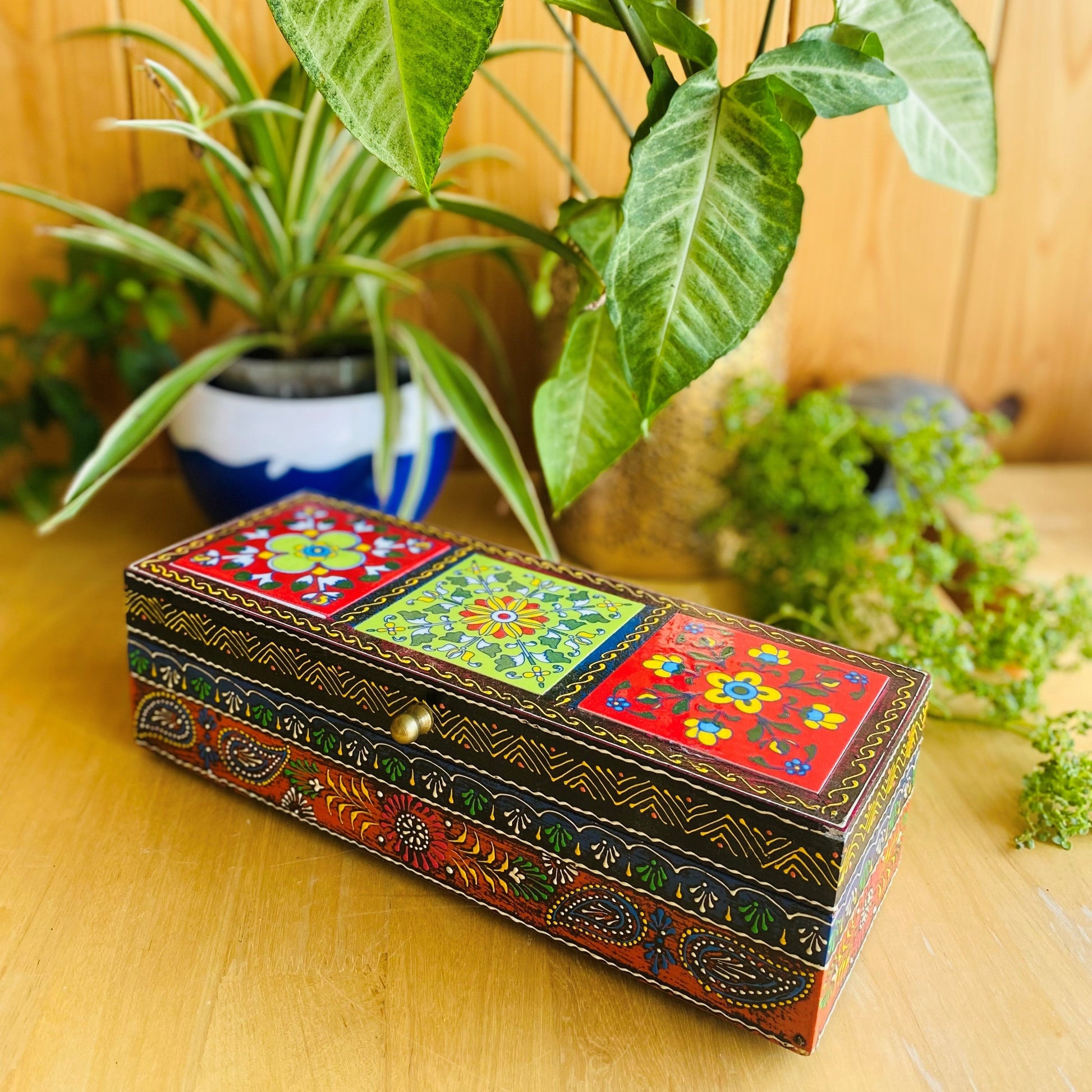 Handcrafted Wooden Box With Ceramic Tile Inlay – 3 Tile Design