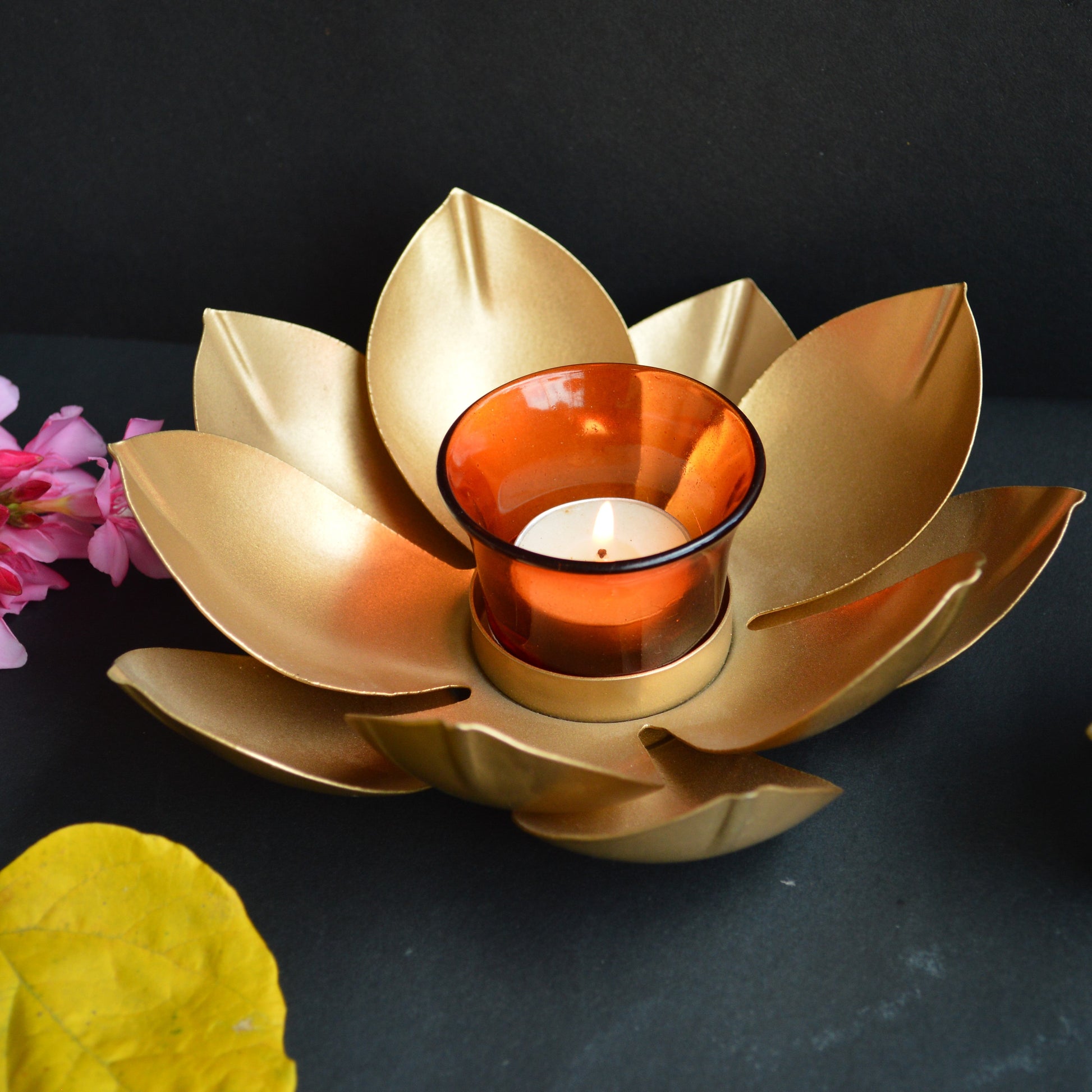 Lustre Lotus Diya – 8" Metallic Bloom Tealight Holder