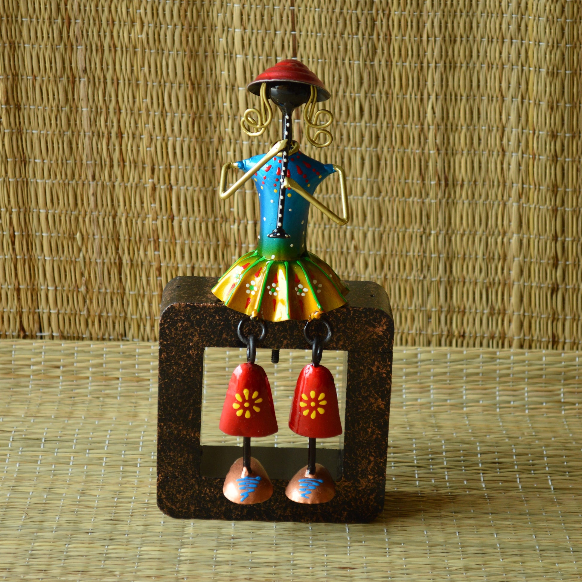 Wrought Iron Musical Girl Figurine On Block - Blue